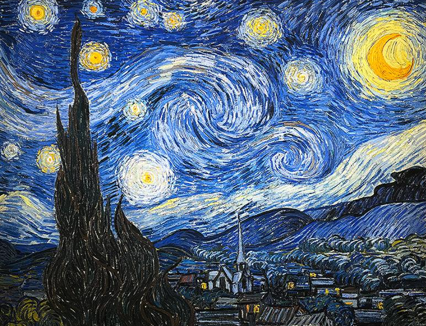 私はそのお題に、フィンセント・ファン・ゴッホ作「星月夜」を選んだ。後年、ゴッホが精神病を患った際に描いたそれは、幻想的なタイトルとは裏腹、不気味な夜空とゆがんだ糸杉が印象的な作品である。